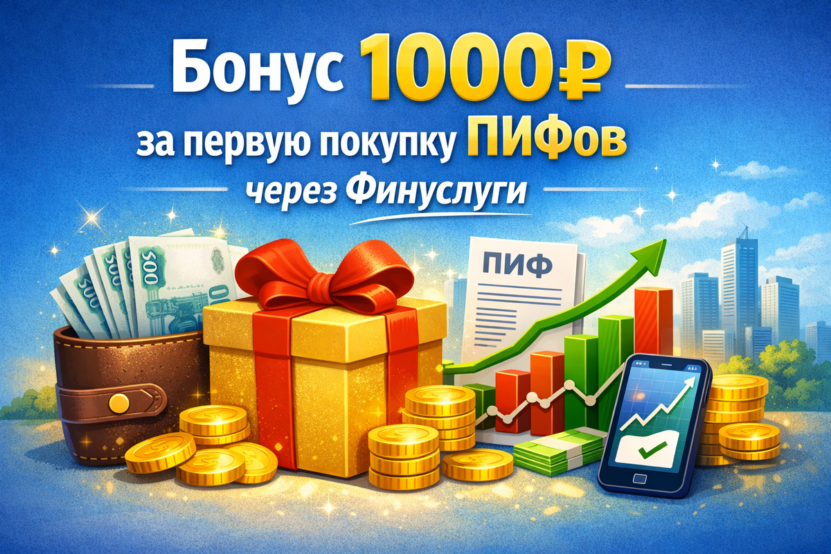 💼 В Финуслугах сейчас есть акция, если впервые купить паи любого фонда от 10к₽ и держать их 3 месяца, то начислят +1 000₽ на кошелёк Финуслуг.