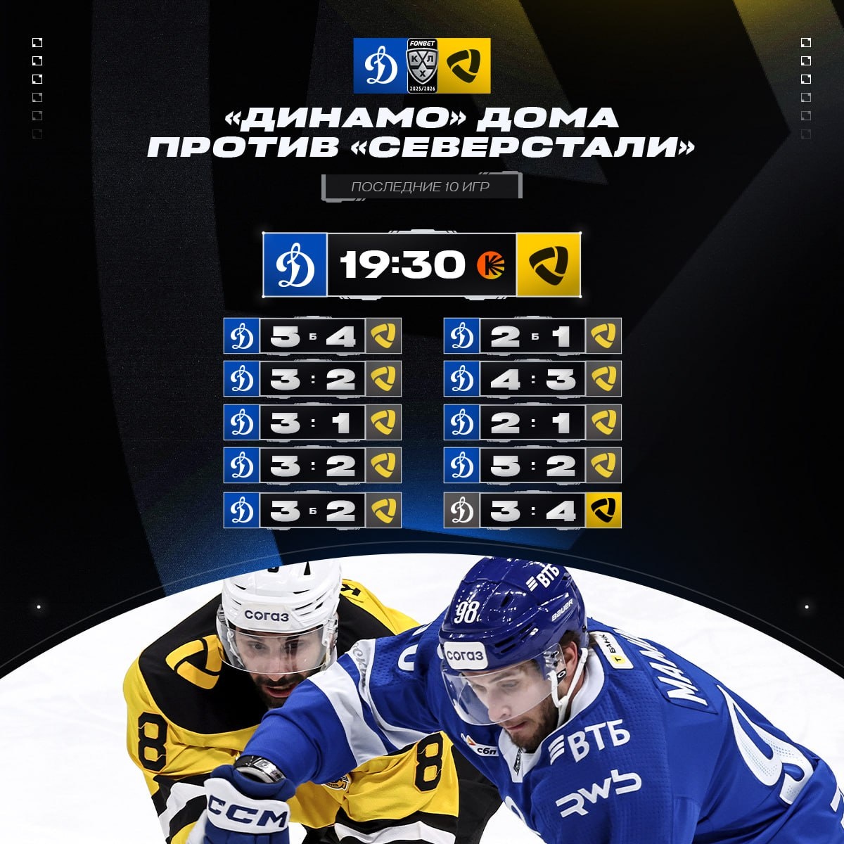 Московское «Динамо» не проигрывает «Северстали» дома уже 9 игр подряд. Продлят ли бело-голубые эту серию до 10 матчей или череповчане одержат первую победу на «ВТБ Арене» за 4 сезона?