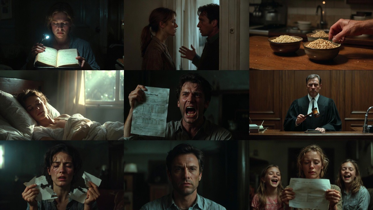 — ЗАТКНИСЬ! — рявкнул он, тряся бумагой перед её лицом. — Ты! И ты! И эти! — он ткнул пальцем в сторону детской, откуда уже доносился испуганный плач. — Вы все мне НЕ РОДНЯ! Понятно?! Ваша мамаша — ШЛЮХА!