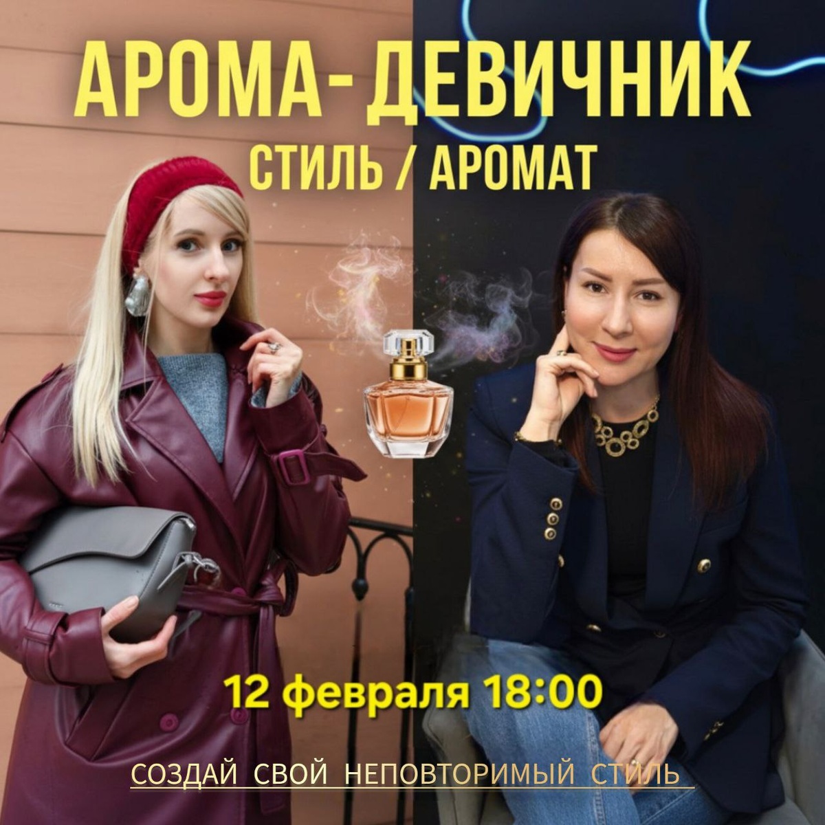 ! Погрузитесь в мир ароматов и узнайте, как они могут изменить вашу жизнь! 🗓 Когда: 12 февраля 🕕 Время: 18:00 📍 Где: г.Видное, ул.Завидная д.4. На мероприятии вы: ✔️Узнаете, как ароматы влияют на настроение. ✔️Найдете идеальный аромат для любых ситуаций. ✔️ Получите советы от стилиста о том, как завершить свой образ. 🎁Подарок ❗️Количество мест ограничено, не упустите шанс! ✨ Записывайтесь 👉@Valeriya_Toplazova и откройте для себя магию ароматов! ✨ Мы ждем вас!