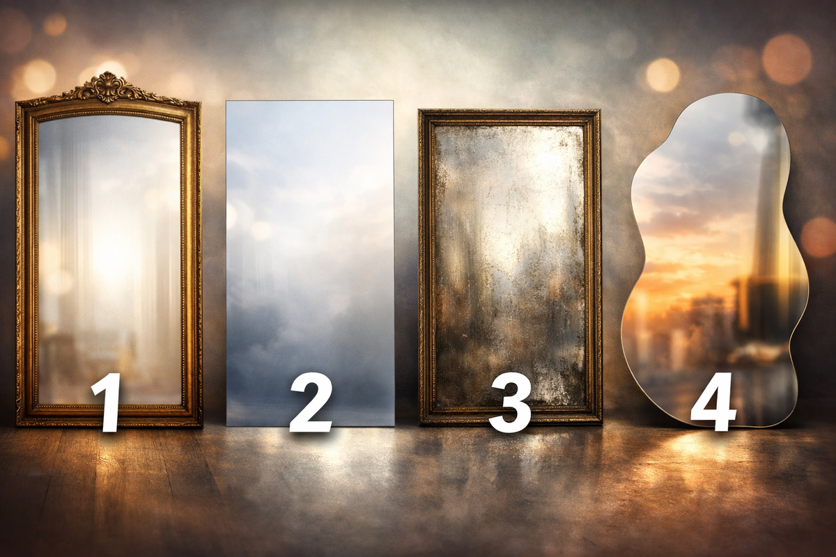 Но зеркало никогда не просто отражение. Оно всегда диалог: между тем, кто смотрит, и тем, кто смотрит в ответ. Посмотрите на четыре зеркала ниже и выберите одно. ❗ Важно: не анализируйте. Выберите то зеркало, на котором взгляд задержался первым, даже если вы не можете объяснить почему. Первая реакция самая честная 🧠 Психология