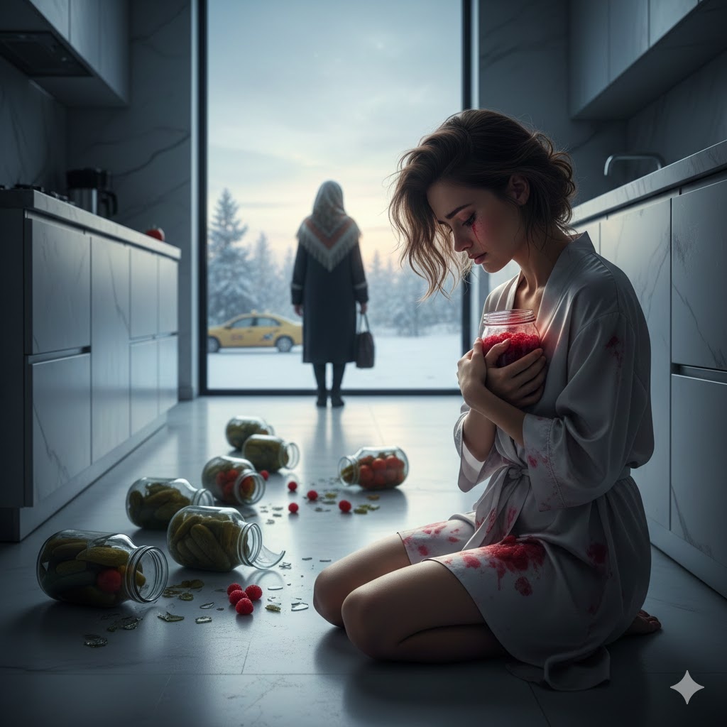 Вернувшись в квартиру, она увидела банки. Они стояли на полу — нелепые, пузатые, с наклеенными вручную бумажками: «Огурчики с чесноком, 2025». Этот почерк, размашистый и наивный, вызвал у Кати приступ почти физической тошноты.