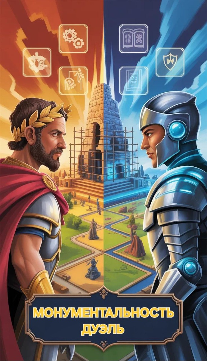 "Монументальность Дуэль" (Шпионаж; Исследование; Торговля) от издательства Лавка Игр - глубокая колодостроительная дуэльная карточная