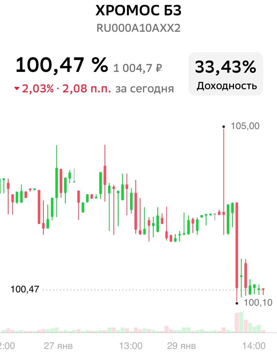 Фактическая дата досрочного погашения биржевых облигаций серии ХРОМОС Инжиниринг-БО-03 (№4B02-03-00138-L от 25.12.2024; ISIN: RU000A10AXX2) — 16 февраля 2026 года. То о чем предупреждал читателей в комментариях - предыдущее размещение было чисто под этот выкуп, чтобы снизить ставку. 💬 Самое смешное, что облигации несмотря на это, продолжали торговаться на несколько процентов выше номинала, гарантируя владельцам убыток к погашению. ☝️Вот почему важно следить за колл-опционами. Никто не вляпался? #облигации