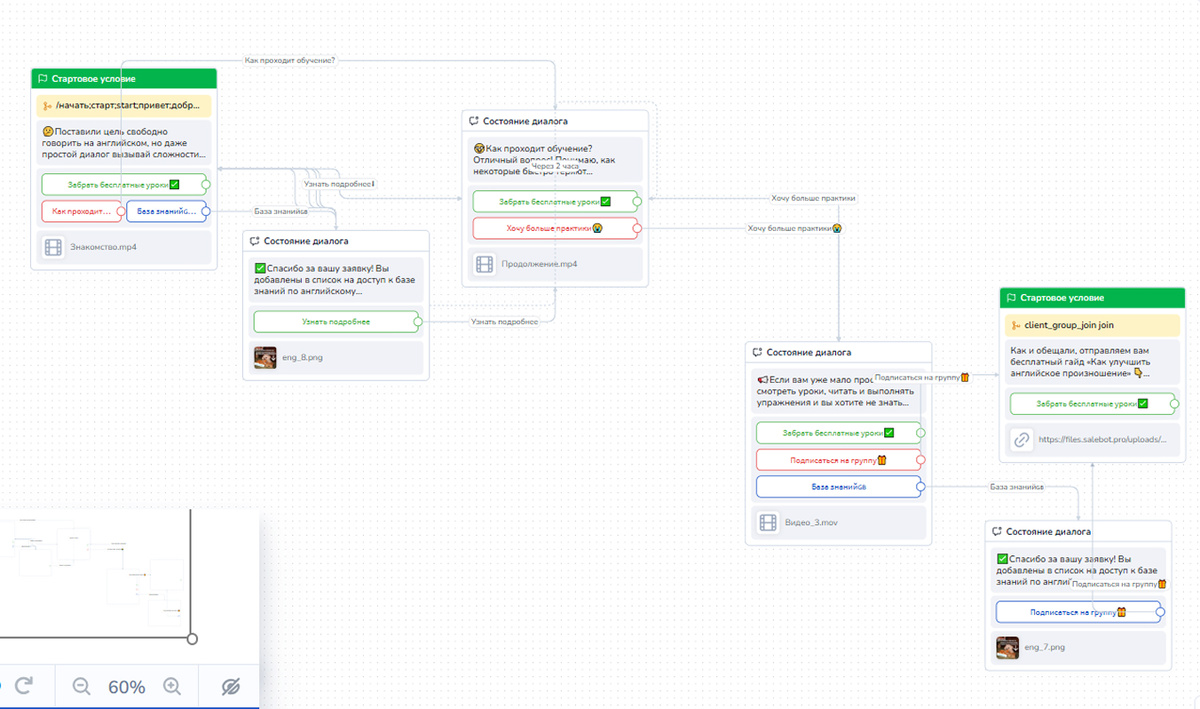 Так как реклама вела в сообщество ВКонтакте, именно группа стала ключевой площадкой прогрева. Чтобы сократить путь от клика до покупки и закрывать возражения уже на первых этапах, я разработал и настроил чат-бота. В нём была собрана вся базовая информация о курсе, материалы для знакомства с методикой и преподавателем, ответы на частые вопросы и элементы, повышающие доверие. Задача этого этапа заключалась в том, чтобы минимизировать неопределённость и снять основные страхи ещё до личного общения.