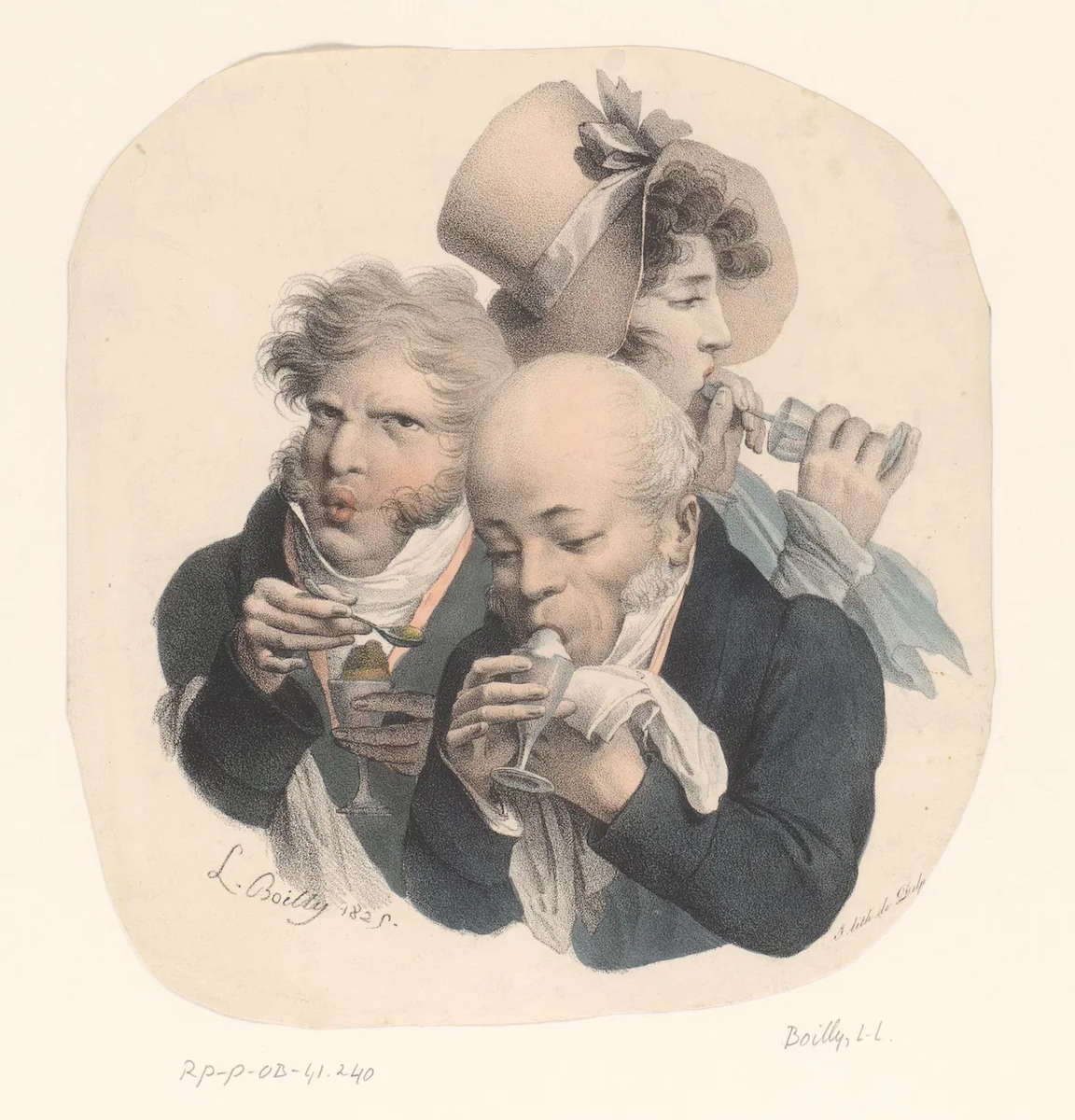 Двое мужчин и женщина едят мороженое, автор Луи-Леопольд Буайи, 1825 год.