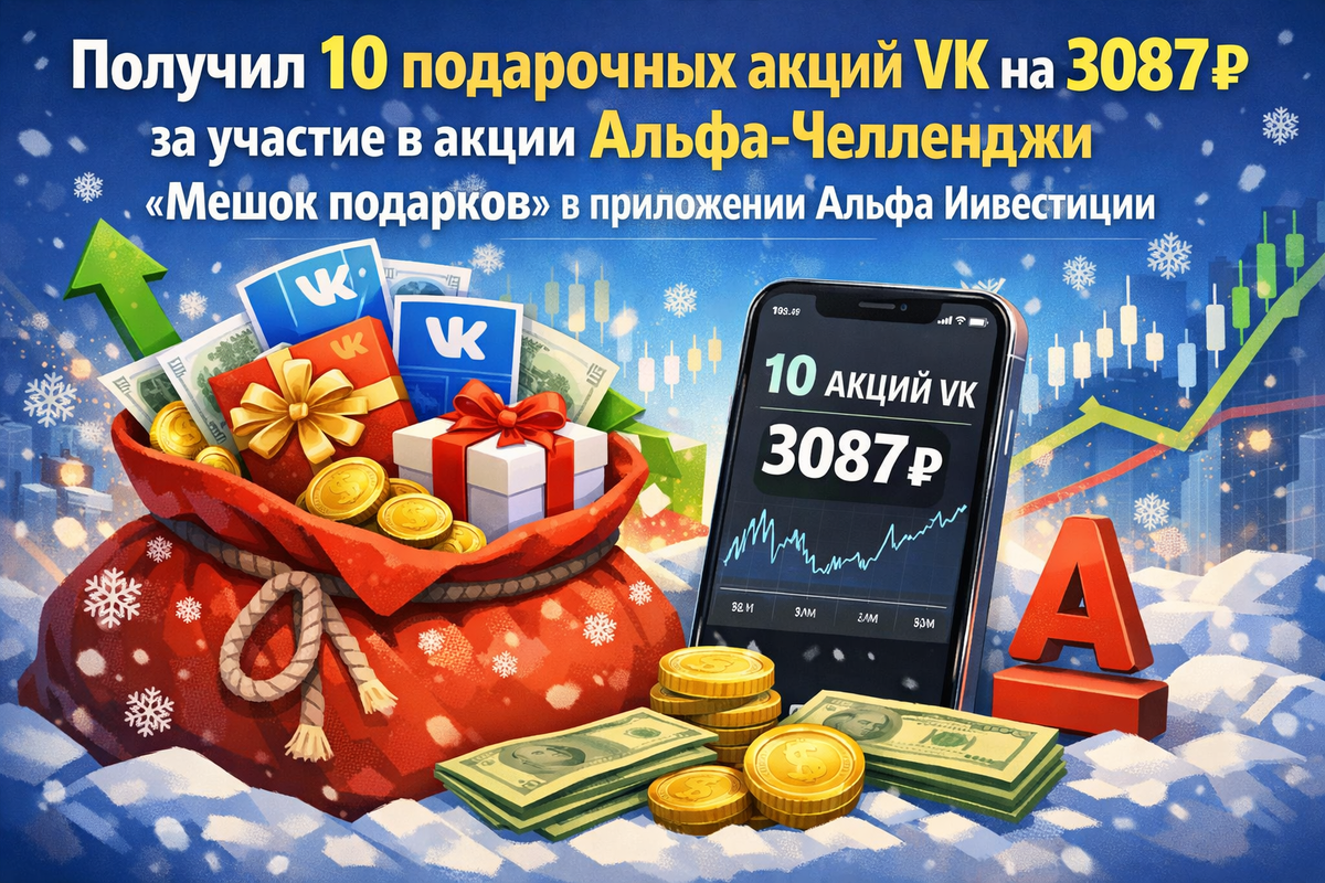 🎁 Зашёл в приложение Альфа-Инвестиции и обнаружил баннер с подарочными акциями, заскринить всё не получилось. Написал в поддержку, ответили что начислили за участие в акции Альфа-Челленджи «Мешок подарков».
