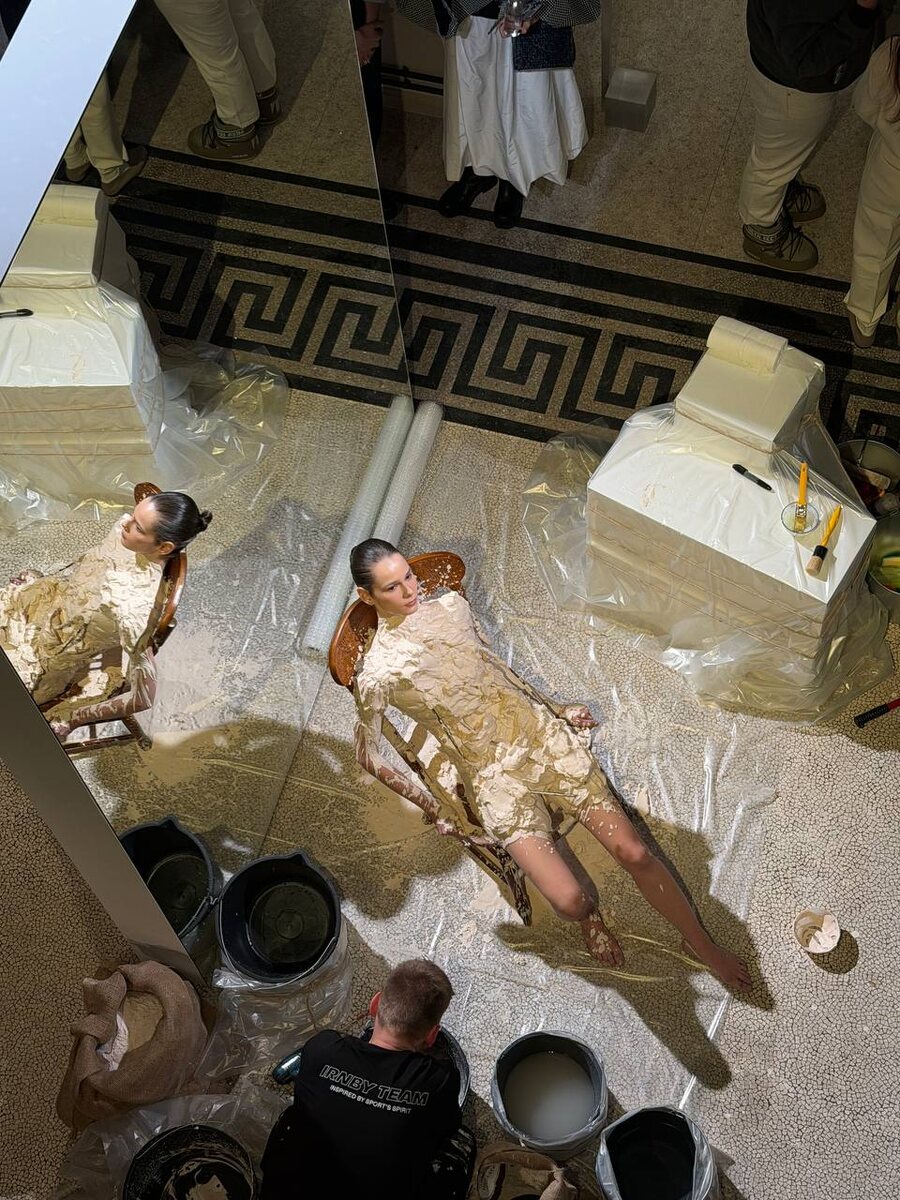 Козырная локация попала в накаченные руки фитнес-амбассадора благодаря толковому агенту. Потолки под семь метров, потрясающая люстра («увидела ее и поняла, что не уйду, говорит Миронова). Раньше тут был офис ВТБ остался ковролин, линолеум, пластик. Возвращать изначальную красоту объекту культурного наследия взялась подруга Мироновой, дизайнер Юнона, которая «не работает с коммерцией, только по дружбе». Не все пока доделано, нет половины мебели, изящные примерочные деревянного дерева пока закрыты для покупателей. Но энергии в магазине уже много. По центру зала скульптор Василий Ануфриев кропотливо облепливает гипсом тело модели, чтоб показать, как трудно выточить идеальные формы. Хозяйка IRNBY учит фанатов этому искусству годами, но такой пресс, кажется, есть только у нее.