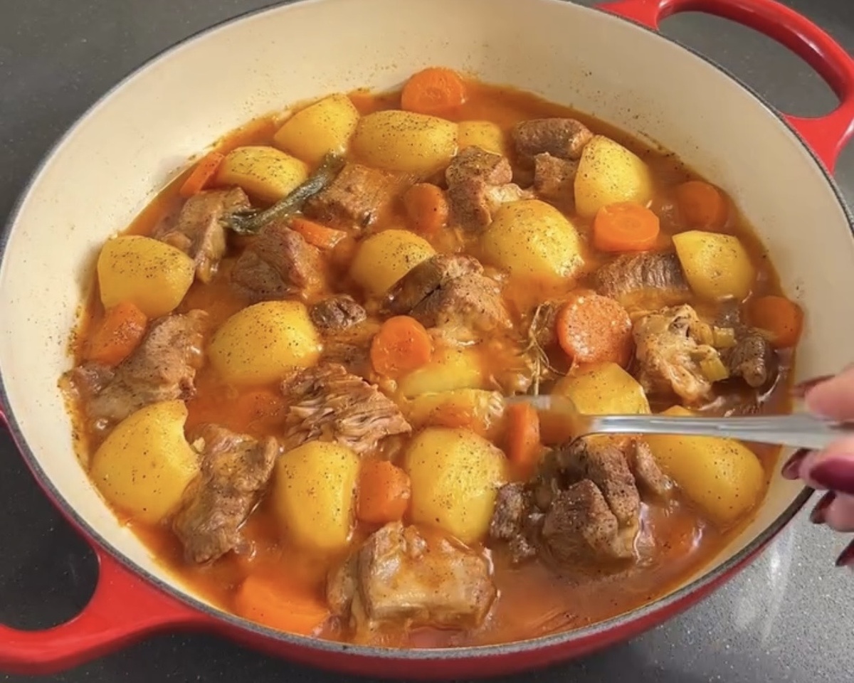 🍲 Ингредиенты 🥕🥔 • Индейка (бедро, кусочками) — 700 г • Мука — для обсыпки • Лук — 1 небольшой • Стебель сельдерея — 1 шт. • Морковь — 1 шт. • Картофель — 4 небольших клубня • Чеснок — 2 зубчика • Томатная паста — 1 ст. л. • Оливковое масло • Немного сливочного масла • Шалфей, розмарин • Соль, чёрный перец 🥘На следующий день становится ещё вкуснее — соус раскрывается, а мясо буквально тает. 🔗Пошаговый рецепт https://dzen.ru/a/aXzfqwaXeCZ794ss