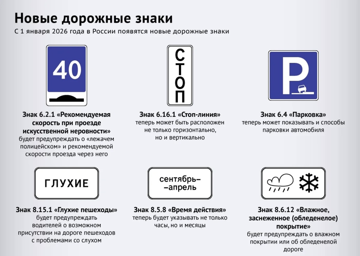 С 1 января 2026 года в России начинает действовать обновлённый ГОСТ по дорожным знакам. Формально добавили больше 60 новых обозначений и табличек, но на практике водители заметят лишь часть из них — те, что реально будут встречаться на дорогах.