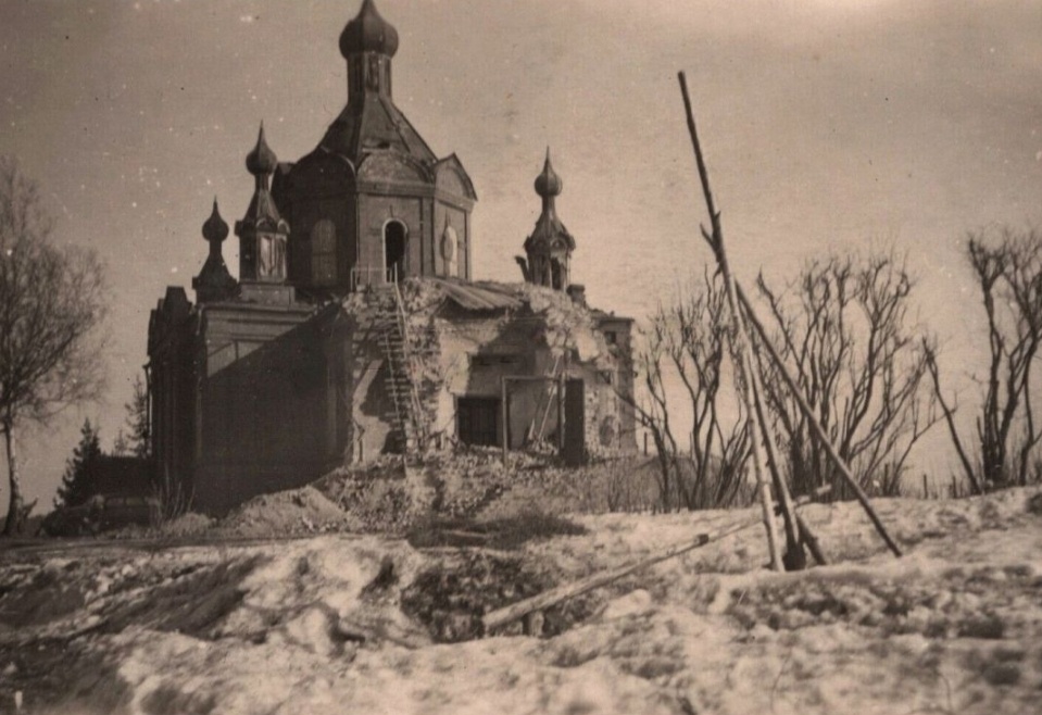во время , Солецкий район во время фашистской оккупации. Церковь Георгия Победоносца.