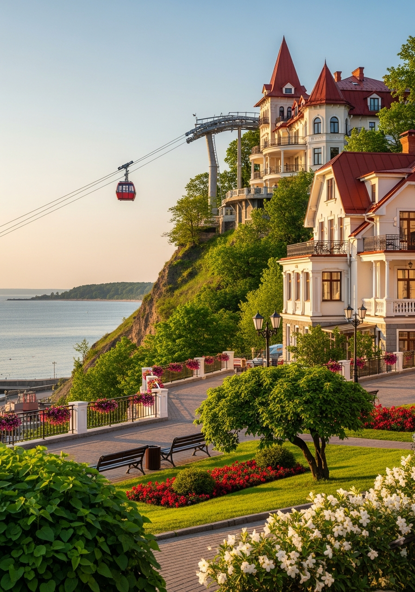 Двухместные кабинки курсируют одна за другой — долго ждать не придётся. Для пожилых людей и семей с детьми это настоящее спасение, ведь альтернатива — крутая лестница в сотни ступеней. С высоты птичьего полёта Светлогорск выглядит особенно живописно — красные черепичные крыши утопают в зелени сосен.