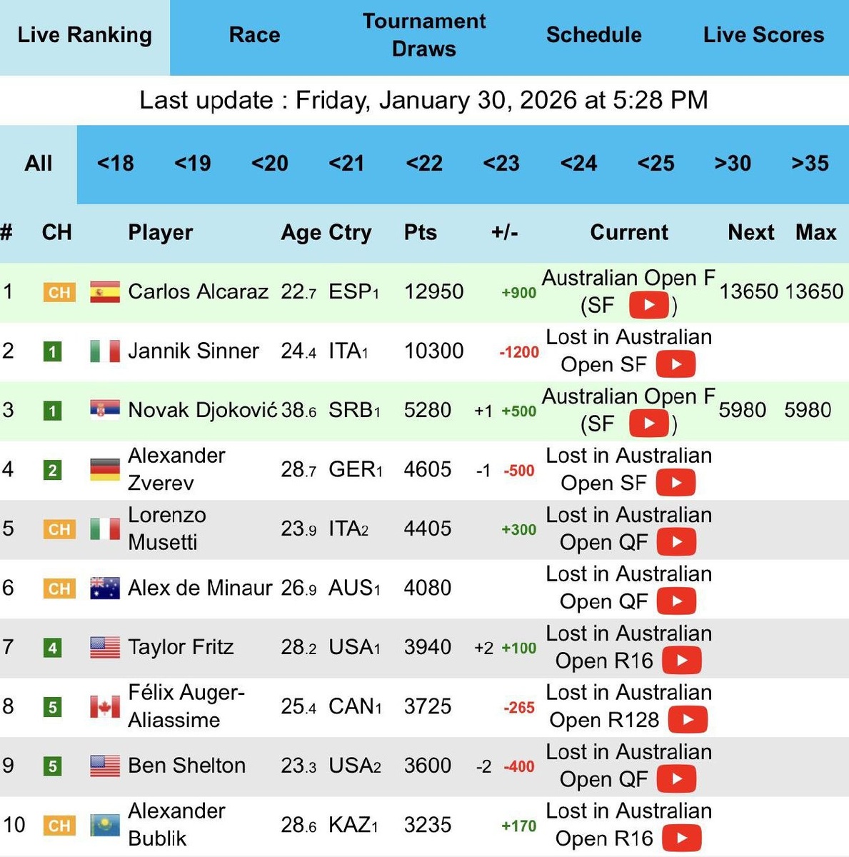 : После проигрыша Янник Синнер потеряет 1200 очков. Если Алькарас выиграет в воскресенье, то его преимущество составит более 3000 очков. В этом случае Синнер сможет обогнать Алькараса не раньше Монте-Карло, а скорее всего, ему придется ждать до Ролан Гаррос. Подпишись на Эйс и точка