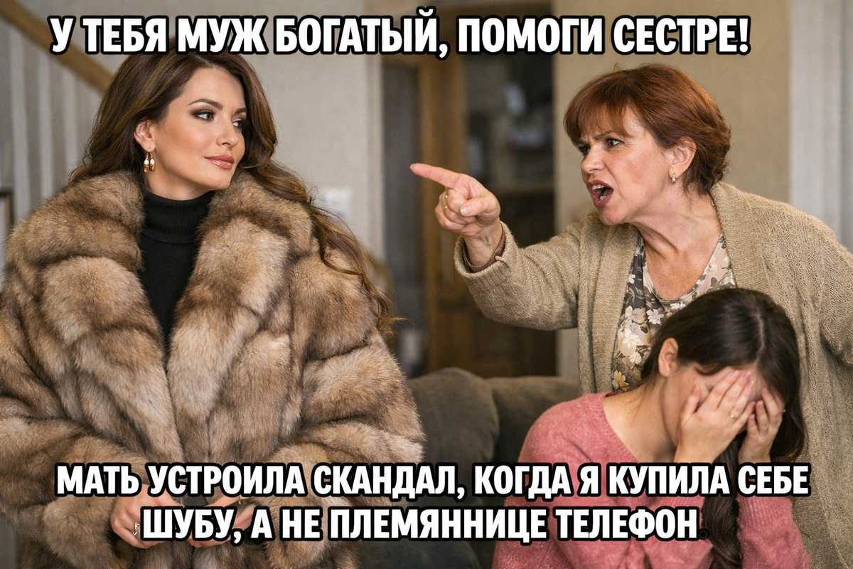 — Конечно обязанность! — мама ударила ладонью по столу. — Мы — семья! В семье всё должно быть поровну! У кого густо, тот делится с тем, у кого пусто! Это по-христиански! А ты... ты эгоистка, Анька. Зажралась. В мехах ходишь, а племянница сиротой при живой тётке выглядит.