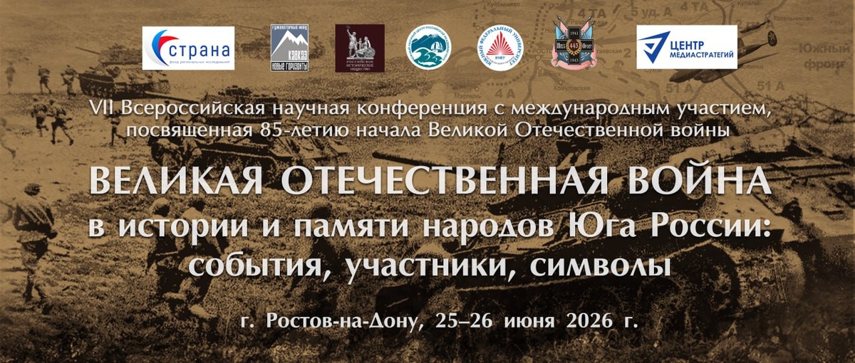VII Всероссийская научная конференция «Великая Отечественная война в истории и памяти народов Юга России: события, участники, символы» пройдет в Ростове-на-Дону с 25 по 26 июня 2026 года. Мероприятие приурочено к 85-летию начала гитлеровской агрессии против Советского Союза. В рамках мероприятия участники будут вырабатывать новые научные знания, анализировать результаты исследований по ключевым аспектам истории Великой Отечественной войны, изучать вклад жителей юга России в победу, а также выявлять особенности боевых действий, оккупационного режима, военных преступлений захватчиков, повседневной жизни военного времени, отражения военных событий в мемориалах и исторической памяти, а также современных практик увековечивания памяти. Основными направлениями работы конференции станут новые подходы и источники в изучении Великой Отечественной войны, а также боевые действия на южном фланге советско-германского противостояния в 1941–1943 гг. и их роль в Победе. 🌐Южная служба новостей