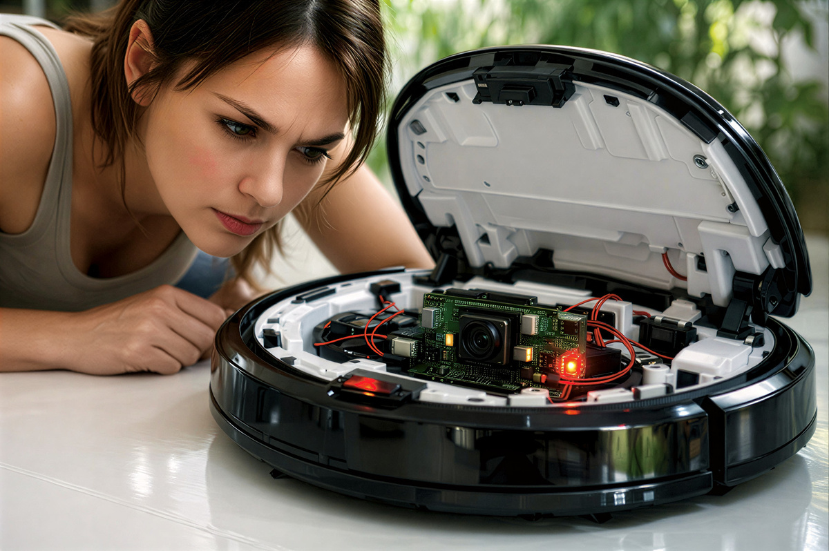 Винты открутились с тихим, покорным щелчком. Под пластиком скрывался не мешок для пыли, а аккуратный кокон из проводов и плат. В центре — крошечная, всё ещё работающая камера. Рядом — микрофон. И чёрная коробочка с надписью «Голосовой модуль. Тест».