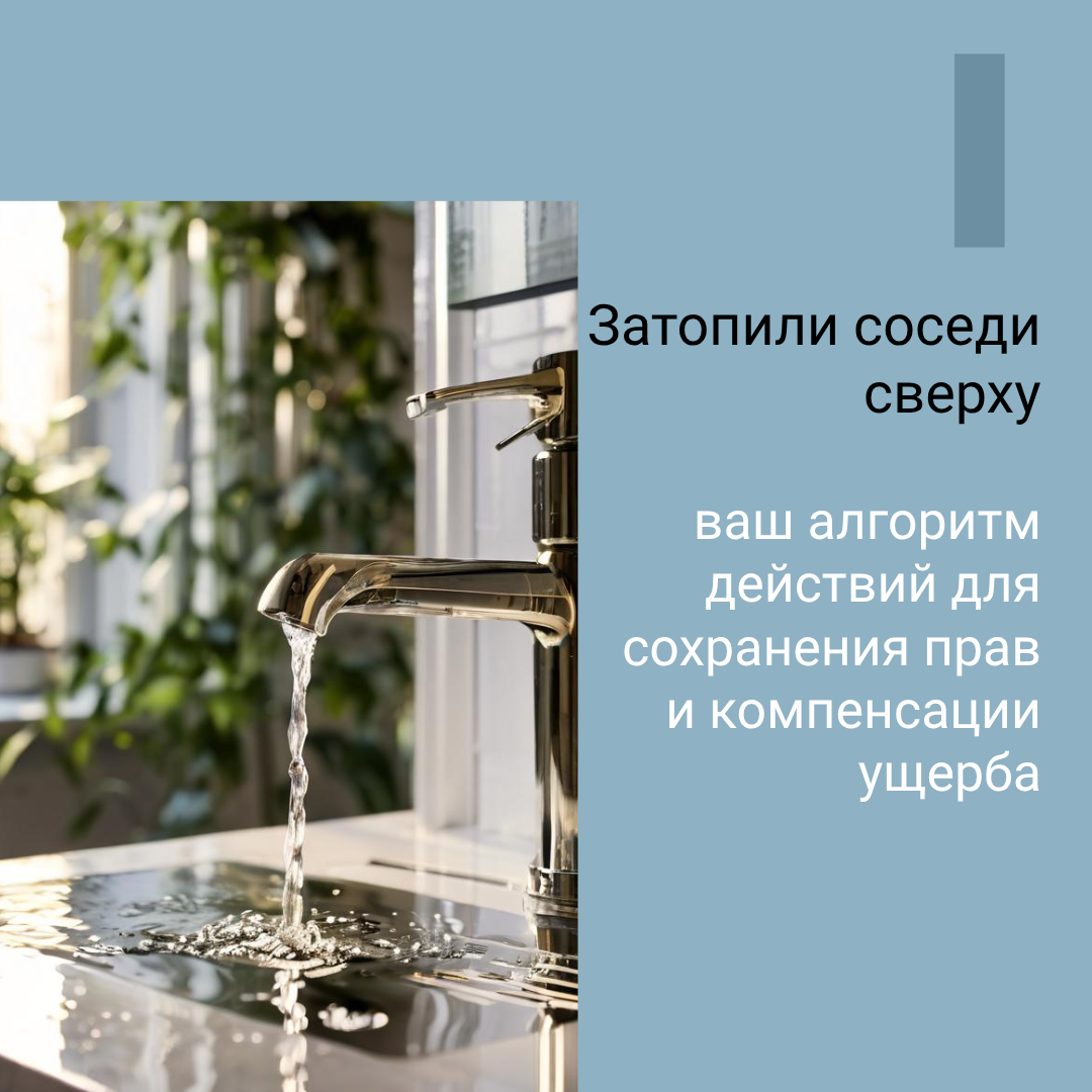Эта ситуация способна вывести из равновесия кого угодно. Чтобы стресс не помешал защитить ваши права и имущество, действуйте по этому четкому плану. Запоминайте, а лучше сохраняйте. 🔴 Шаг 1 и самый важный: безопасность Первое — не фотографировать и не паниковать. Первое — обесточить квартиру. Вода — отличный проводник, и риск удара током или короткого замыкания велик. Выключите рубильник на щитке (обычно на лестничной площадке или в квартире). Уберите из зоны потопа электроприборы и ценные вещи. 🆘 Шаг 2: остановить потоп 📸 Шаг 3: фиксация доказательств Пока едут аварийные службы, максимально подробно зафиксируйте все на фото и видео. 📝 Шаг 4: составление акта о затоплении — ключевой документ Это основа для любых претензий и обращений в суд. Акт составляет комиссия из представителей управляющей компании (УК). ⚠️ Что делать, если УК не приезжает? Вы имеете право составить акт самостоятельно в присутствии двух незаинтересованных соседей и председателя совета дома. Этот документ будет