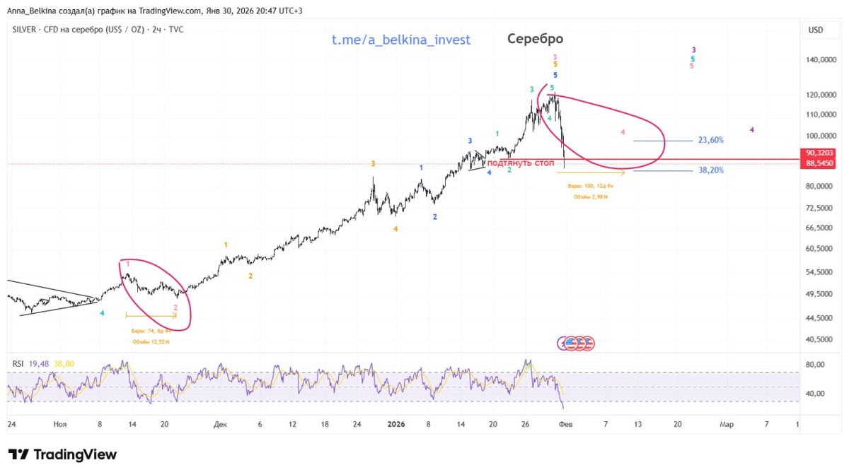Серебро, вслед за платиной, также прошло стоп по одной из заходной. По сетке Фибо пока [4] волна в рамках коррекции, но за этим уже наблюдаем со стороны. Не является ИИР 💪 БОЛЬШЕ разметок в Закрытом канале: Бот Закрытого Канала, доступен Пробный Период! (подписаться из-за границы, пишите личным сообщением)