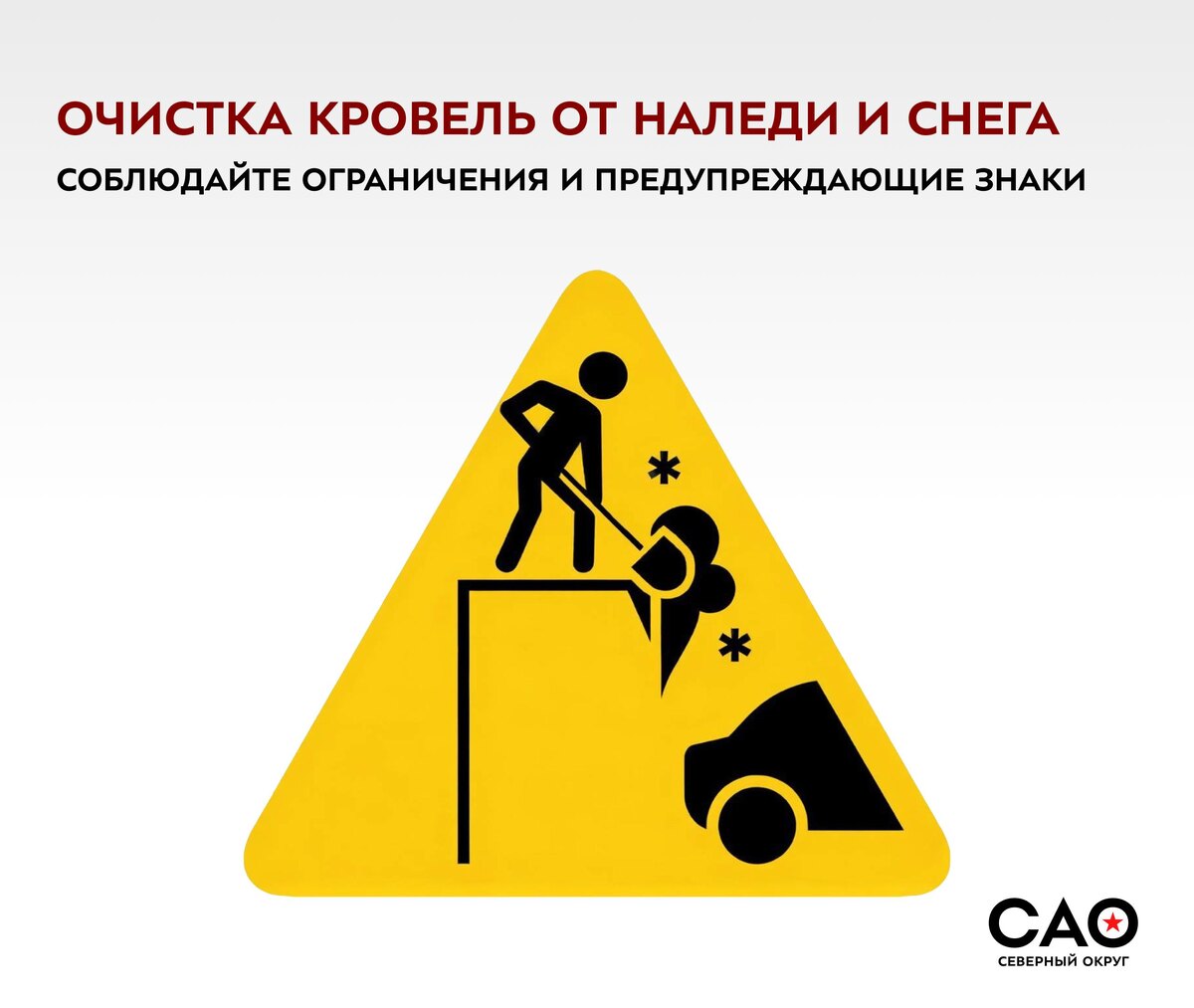 В ближайшие три дня в Северном округе пройдут работы по очистке кровель домов от снега и наледи. Работы выполняются в дневное время с обязательным ограждением зон проведения. ❗️ Чтобы работы прошли безопасно, просим жителей обратить внимание: ➡️НЕ паркуйте личные автомобили в непосредственной близости к фасаду дома ➡️Соблюдайте временные ограничения, не заходите за ограждения в местах проведения работ и обращайте внимание на предупреждающие знаки ✅ Информация заранее доведена до жителей через сервис «Электронный дом», а также размещена в подъездах и на информационных стендах. Спасибо за понимание и соблюдение мер безопасности ❤️ 📲 Префектура САО теперь в MAX