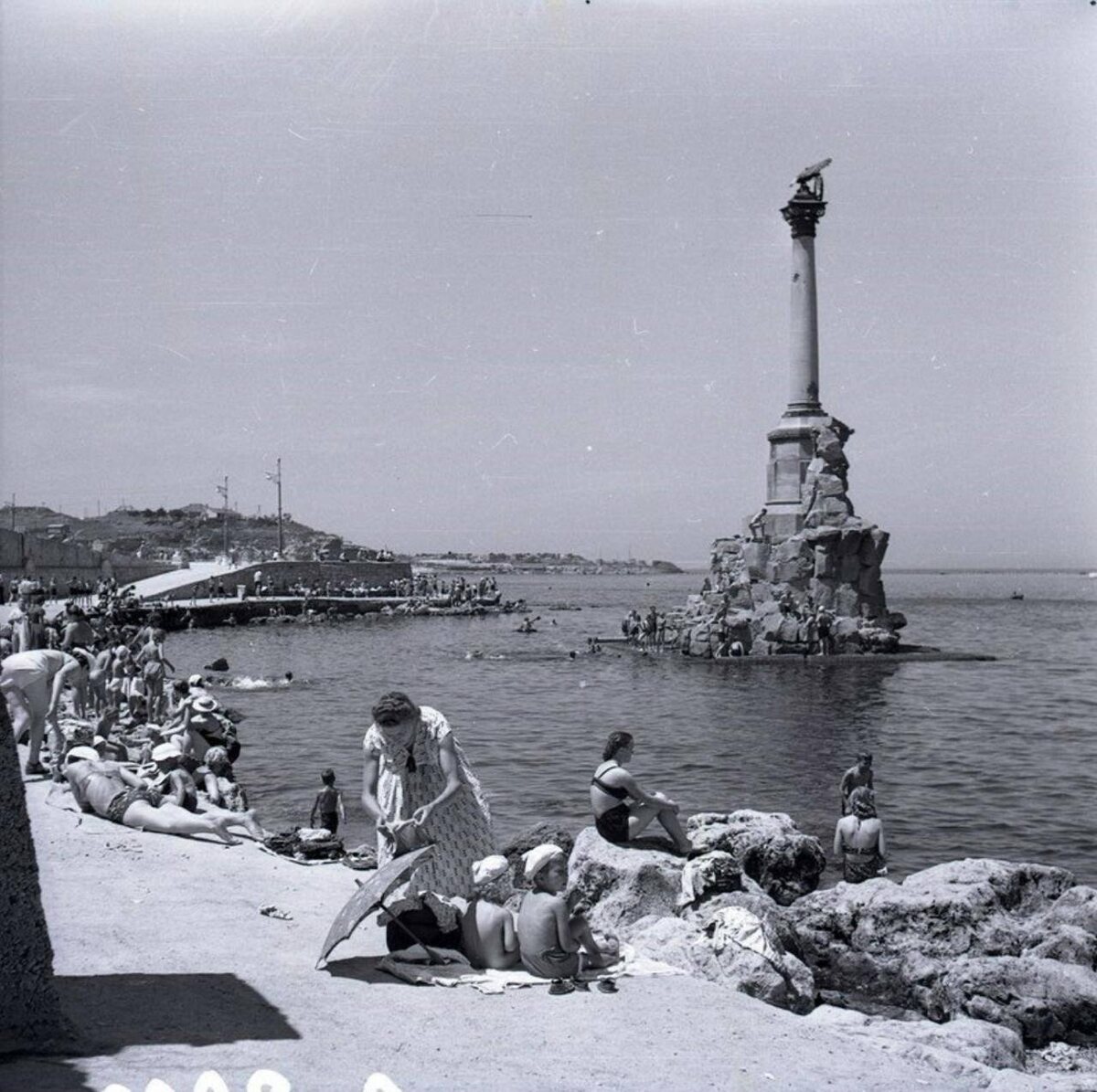 🎞️ Пляж на Приморском бульваре. Памятник затопленным кораблям. 1953 год.