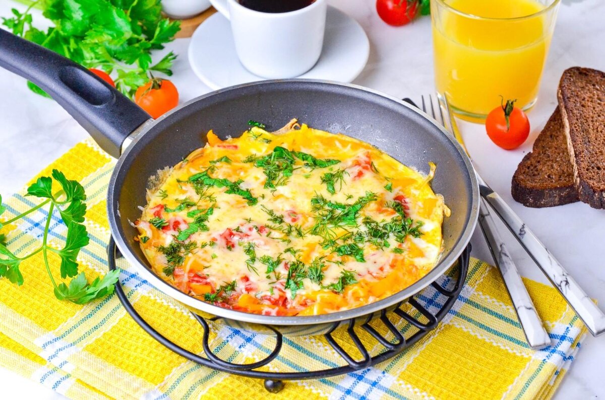 Готовы? Держите мои проверенные ленивые рецепты. Готовьте на одной сковородке — посуды минимум! 1. Омлет с помидорами, луком и сыром — классический быстрый ужин за 10 минут