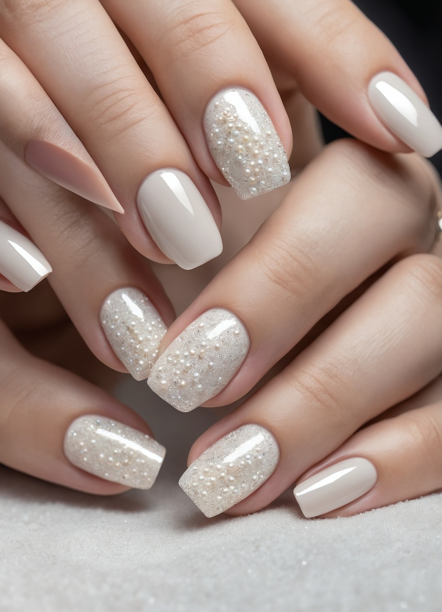 Молочный маникюр и жемчужная втирка в разных стилях: от классики до кэжуала