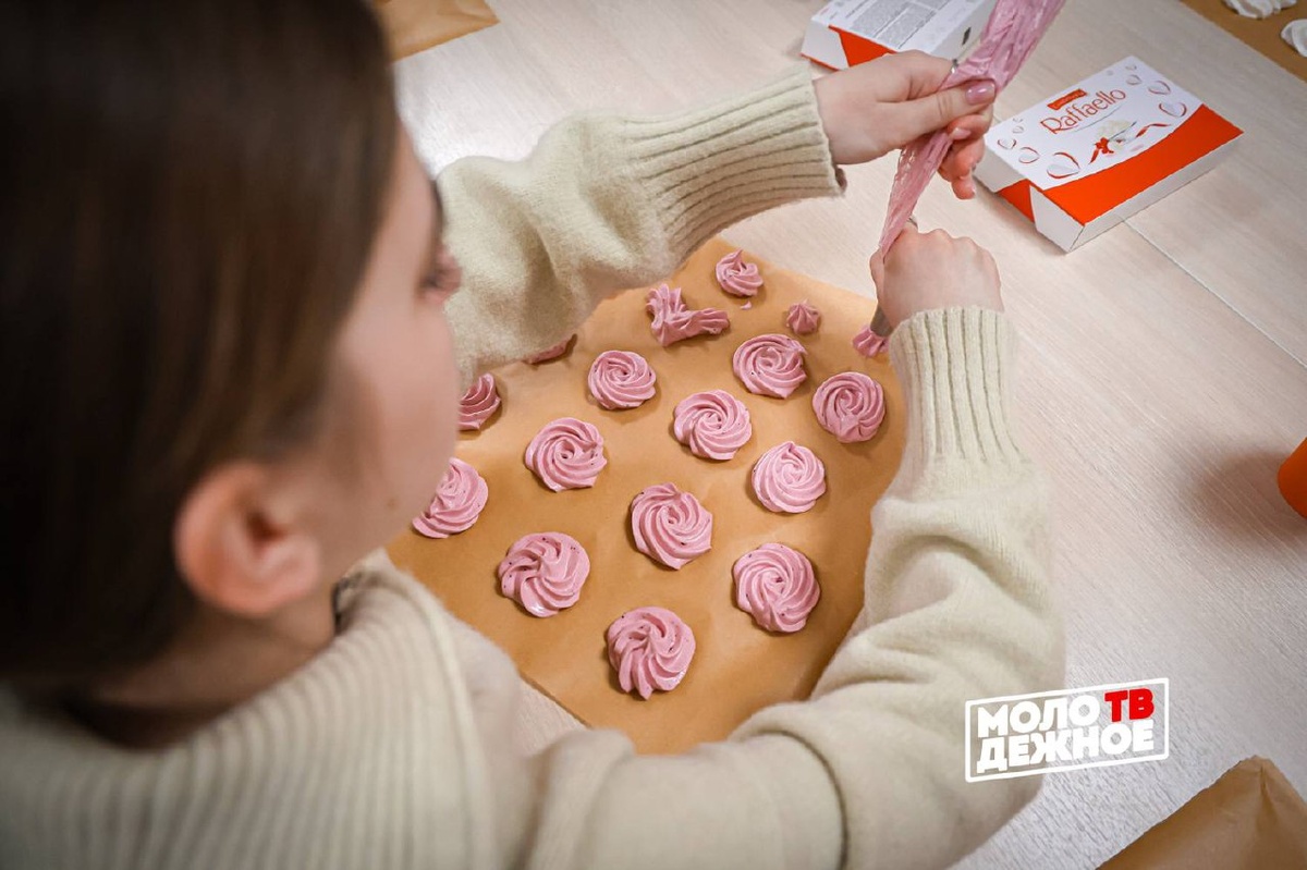 🧁В Клину для семей участников СВО провели первый в округе мастер-класс по приготовлению домашнего зефира в клубе «Стекольный