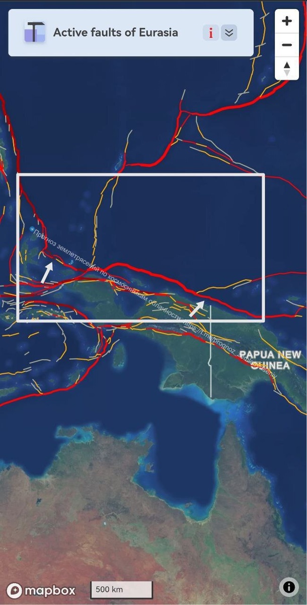 Трассируется протяженная рифтовая зона на юге Филиппинской и Каролинской плит (М7+) ===== The extended rift zone in the south of the Philippine and Caroline plates (M7+) is traced