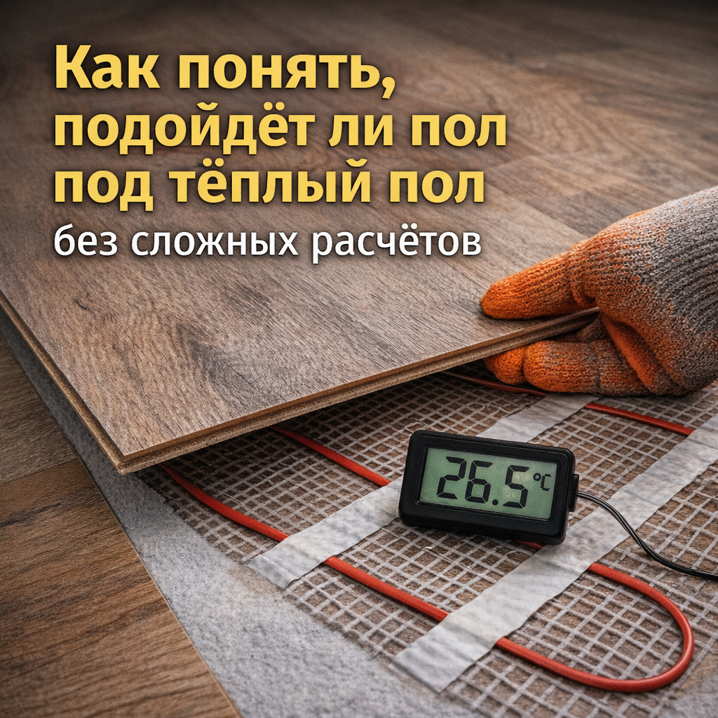 Но вопрос остаётся: любой ли напольный материал можно укладывать сверху? Производители пишут “подходит”, продавцы говорят “можно”, а в итоге появляются: Разберёмся, как проверить совместимость без формул и инженерных расчётов. Первое и самое важное - не догадки, а документация. В описании должно быть чётко указано: Если этого нет - считать материал совместимым нельзя. Большинство напольных покрытий рассчитаны на температуру поверхности до 27–28°C. Важно: Если система может нагреваться сильнее, это уже риск: Есть два основных варианта: Чаще совместим с большинством современных покрытий. Требует более внимательного подхода к выбору материала. Слишком толстое покрытие: Слишком мягкое: Баланс важнее максимальных характеристик. Для тёплого пола особенно критично: Неровности при нагреве усиливают нагрузку на соединения. Даже совместимое покрытие может пострадать, если: Тёплый пол запускают постепенно, повышая температуру по