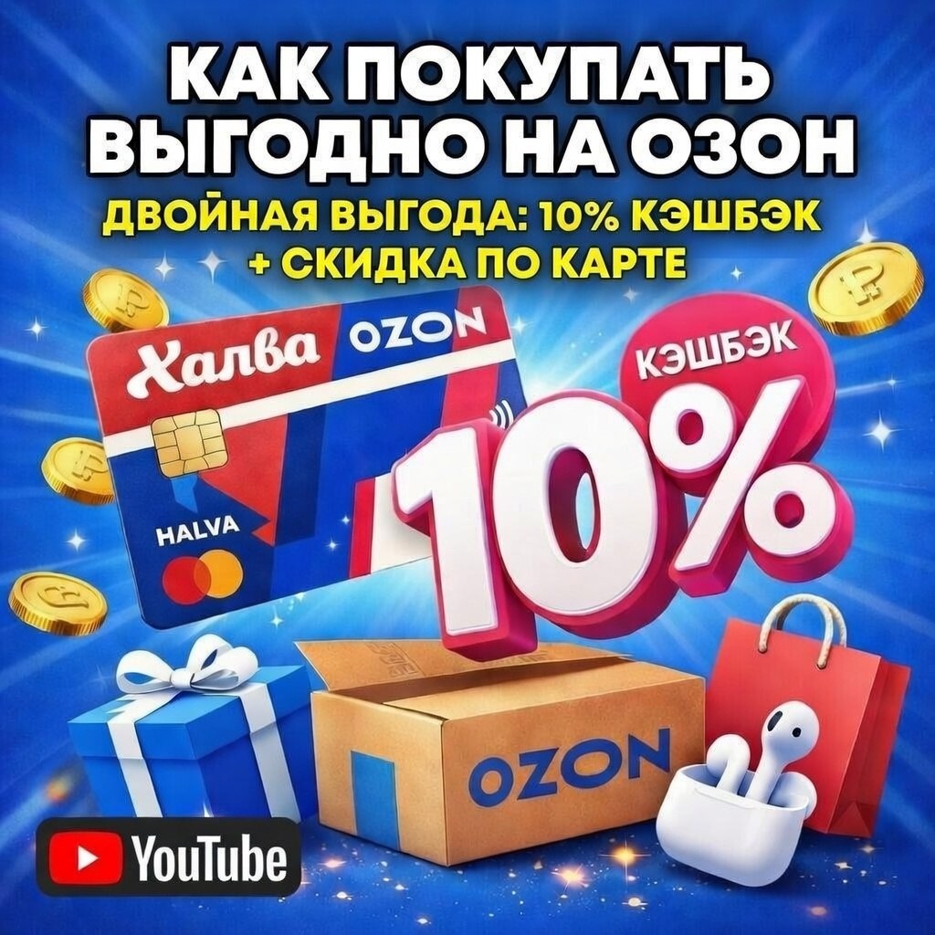 ✅ Заказать карту ХАЛВА 👈🏻 ❗️Обязательно по ссылке 👈🏻 чтобы получить дополнительные 1000р! 🎥 В этом видео показываю рабочую схему, как получать 10% кэшбэка рублями с любой покупки на Ozon с помощью карты ХАЛВА, при этом применяя еще и скидку самого озона по карте Ozon! Очень выгодно. 🧐 Как это работает: ✔️ Получаем скидку по карте Ozon ✔️ Платим через Халву ✔️ Получаем 10% кэшбэка рублями 💰 Например: Покупка на 50 000 ₽ → скидка + возврат рублями 5000 ₽ 💰 Реальная ощутимая выгода. ☑️ Для этого использую: — карту Халва от Совкомбанка — сертификаты Ozon — правильную последовательность действий 🤳🏼 Пошагово показываю весь процесс: Как купить сертификат, как активировать, как правильно оплатить товар, как получить кешбэк и вернуть деньги, какие есть нюансы. 💎 Если часто заказываешь на Ozon — это видео поможет экономить на постоянной основе. #Ozon #кэшбэк #Халва #экономия