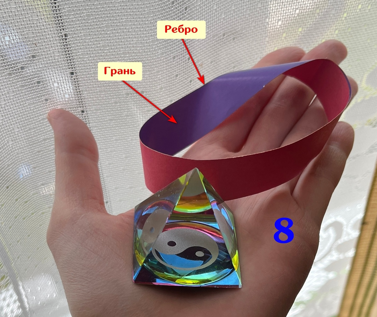 - Нельзя чётко определить, где кончается розовый и начинается фиолетовый, ибо это одна единая грань! (Представьте, что лента Мебиуса будто переливается двумя цветами).
