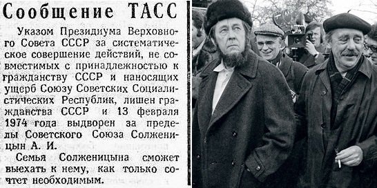 13 февраля 1974 года лишен гражданства и выдворен из СССР Солженицын