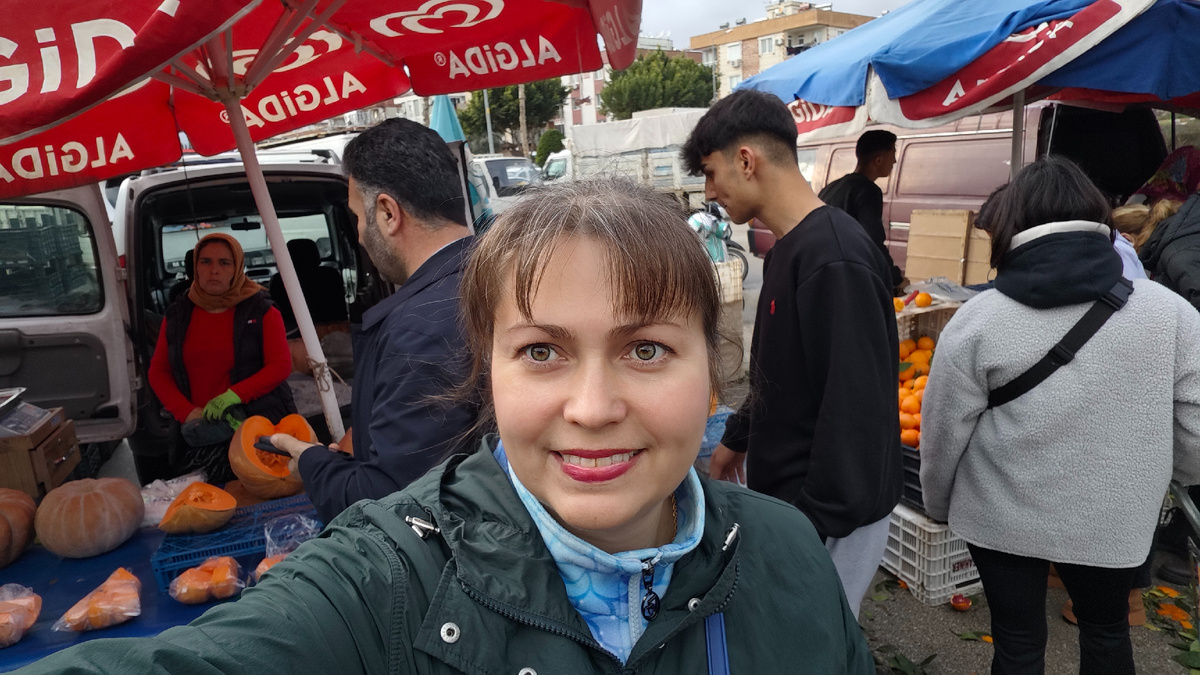 И даже когда небо серое, а солнца мало, базар остаётся тем самым местом, где чувствуется жизнь: шумная, тёплая, человеческая. С криками продавцов, запахами овощей, пакетами в руках и ощущением, что ты не просто сходил за продуктами — ты побывал внутри настоящей турецкой повседневности.