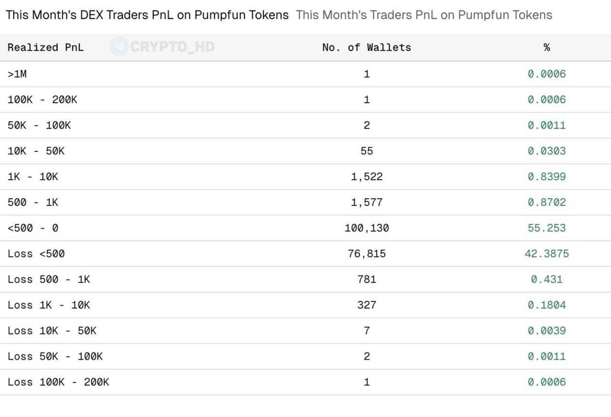 😐 Криптоэнтузиасты в Twitter опубликовали статистику трейдеров Pump․Fun за прошлый месяц