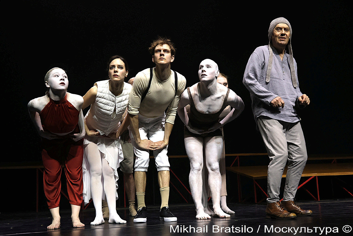 Весь спектакль меня не покидало ощущение, что я смотрю студенческую постановку. Причем я нисколько не умаляю это понятие, так как сейчас спектакли в театральных ВУЗах - это почти всегда не хуже того, что показывают в лучших театрах, а то и значительно лучше и битва за места идёт нешуточная. Возможно дело в костюмах. Это было то, что нашлось дома: обтягивающее эротиШное трико (хочется крикнуть: "Девочки все сюда, Валя, Валя, все сюда, Аннушка!")), в котором по утрам перед открытым окном жмут гирю; мамин павлопосадский платок, костюм для фото на паспорт и т.д. При этом танцы были очень красивые (хореограф Ксения Михеева) в исполнении прекрасных девушек и они очень украшали визуальную картинку, хотя у меня лично такие танцы ассоциируются с греческими мифами. Прекрасно поющая Александра Малова добавляла прелести спектаклю. Аскетично оформленное сценическое пространство (художник Алиса Меликова) позволяло зрителям полностью сосредоточиться на действе, тем более глазу есть на что посмотреть) Более чем!