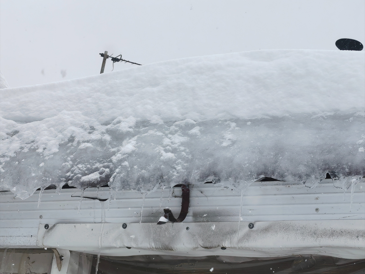 Зима нас продолжает удивлять. Вчера новый снегопад, сегодня +4. Снег на крышах застревает на отливах (кое-где отливы мы сняли, но лёд все равно висит!) и превращается в ледяные глыбы. И вжик-бабах-вжик-бабах.