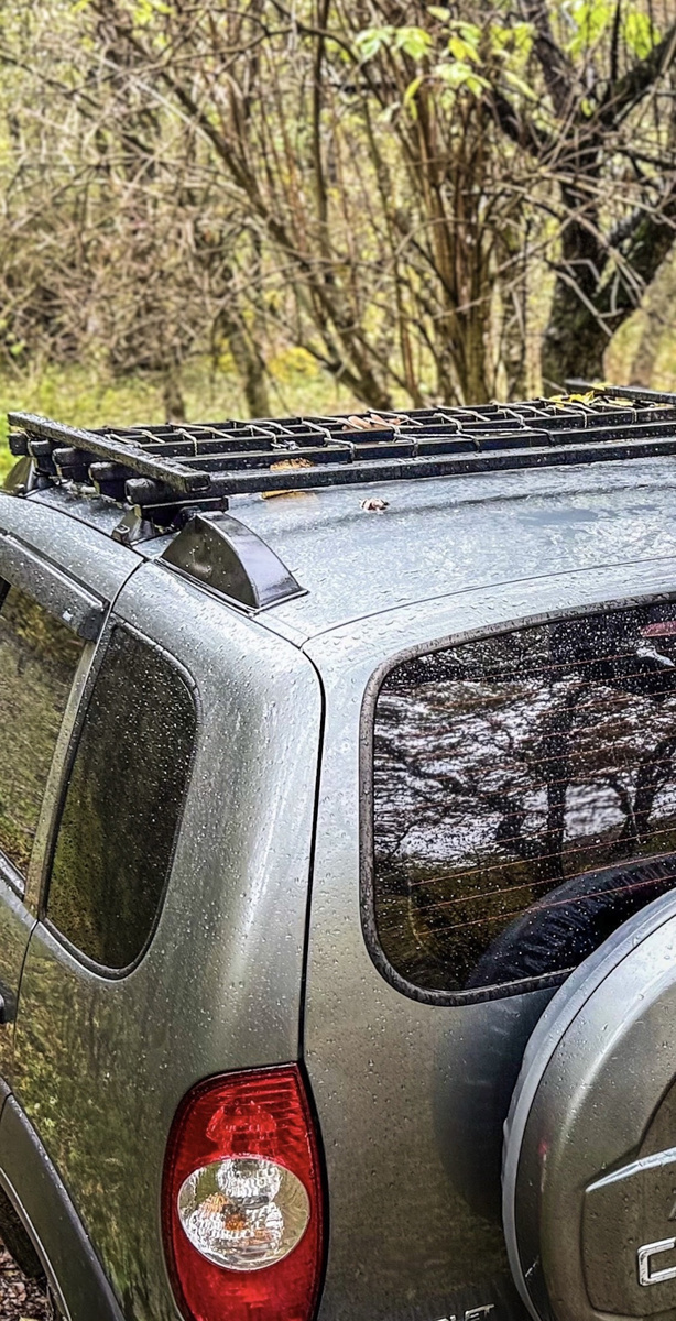 В далеком прошлом я устанавливал на Шевика багажник на крышу – довольно бюджетный вариант, но зато надёжный. И после ещё нескольких лет я избавился от колхозных дуг и установил рейлинги, которые уже более интересный вид придают.