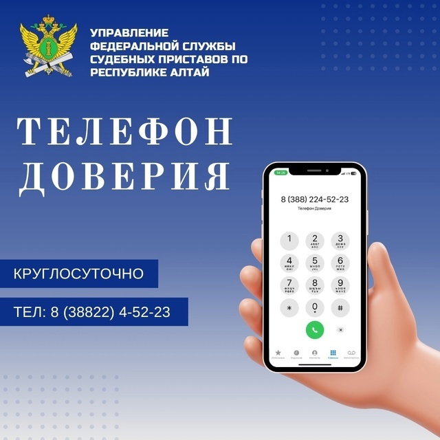 Управление Федеральной службы судебных приставов по Республике Алтай напоминает жителям региона о работе круглосуточного «телефона доверия». Данный сервис является важным инструментом обеспечения обратной связи с гражданами, профилактики должностных правонарушений и борьбы с коррупцией в рядах ведомства. По «телефону доверия» граждане могут сообщить о нарушениях служебных обязанностей со стороны сотрудников службы судебных приставов: грубое отношение или обращение, превышение должностных полномочий со стороны судебных приставов, бездействие или несоблюдение законодательства в сфере исполнительного производства, мошенничество, служебный подлог, причинение ущерба имуществу. Конфиденциальность информации гарантируется. Каждое обращение тщательно проверяется и при выявлении в действиях должностных лиц нарушений принимаются необходимые меры по их устранению. Отделение собственной безопасности УФССП России по Республике Алтай уделяет особое внимание недопущению проявлений фактов злоупотребле