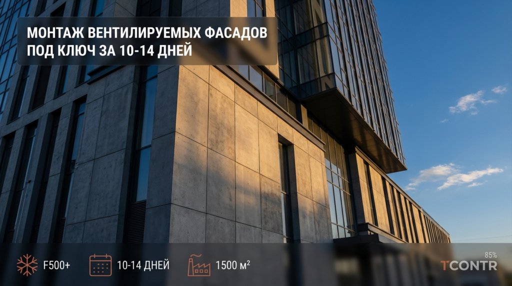 Да, вентилируемый фасад — это «сухой» процесс монтажа. Работы можно проводить при температуре до -15…-20°C. Единственное ограничение касается химических анкеров и утеплителя (требуется зимняя пена), но мы учитываем эти нюансы. Зимний монтаж позволяет сдать объект к началу весеннего сезона без потери качества.