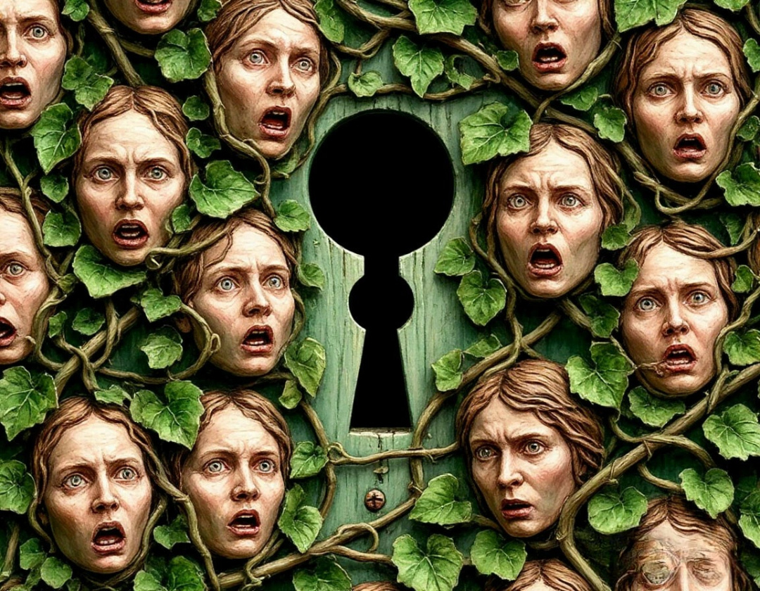 Замок был чудовищным. Не просто чугунным — он казался выкованным из металла, которого больше нет в природе. Черный, с зеленоватой патиной в пазах, он весил, наверное, пудов пять. Но страшным в нём было не это. Страшным был узор. Вокруг замочной скважины вилась виноградная лоза, но листья её были сплетены не с гроздьями, а с человеческими лицами. Крошечными, размером с ноготь, но отчетливо проработанными. Рты лиц были открыты в беззвучном крике, а глаза — глаза, казалось, следили за тобой.