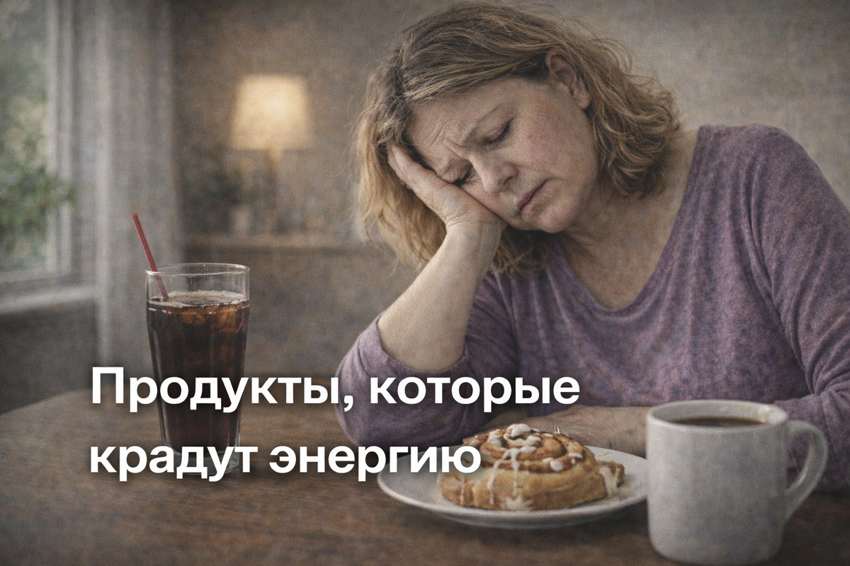 Многие после 40–45 лет говорят одно и то же: «Раньше сил было больше». Начинают искать причины в возрасте, погоде, давлении. Но редко кто смотрит в тарелку. Есть продукты, которые не дают энергию, а наоборот — забирают её через час-два после еды. Причём это не обязательно фастфуд. Иногда это вполне «обычная» и даже «полезная» пища. Разберёмся, что именно крадёт энергию и почему так происходит. Самый частый энергетический вор — быстрые углеводы. Белый хлеб, булочки, слойки, печенье вызывают резкий подъём глюкозы в крови. Организм отвечает мощным выбросом инсулина. Дальше происходит следующее: Человек думает, что «не выспался», а на самом деле — это реакция на скачок глюкозы. Даже если вы не едите конфеты, стакан сока может содержать столько же сахара, сколько газировка. Проблема в том, что: После короткого подъёма энергии наступает спад — и ощущение разбитости. Жир сам по себе не враг. Но если приём пищи слишком тяжёлый, жирный и обильный, организм переключается в режим «переварить». В