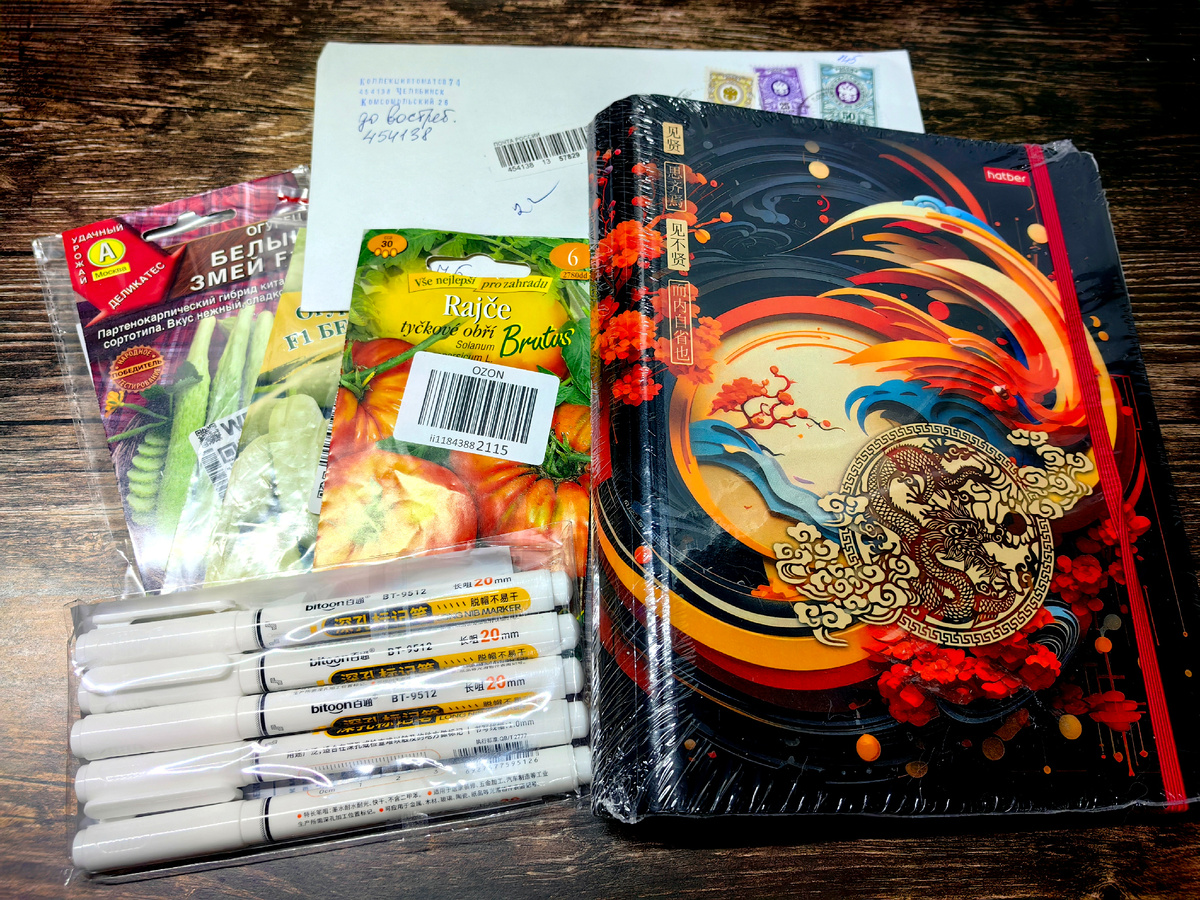 Ну, друзья, у меня случилось пополнение всем самым важным))) Во-первых мне доехал заказ от Коллекция Томатов 74 и долгожданный Брутус чешского разлива от Оли Оловянниковой! Это прямо прекрасные новости для меня! Еще получила парочку белых огурцов в ВБ, белые маркеры для подписывания стаканов и новую тетрадку на кольцах со сменным блоком для семян.