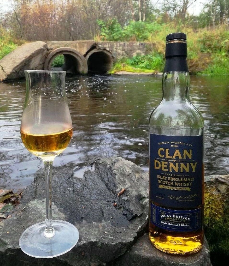 Этот айловец интересен необычным сочетанием торфяной интенсивности и фруктово-кондитерской насыщенности (и это при 40-ка градусах крепости). Любопытный релиз, не особо известный, но для тех кто попробовал, думаю, незабываемый. Clan Denny Traditional Islay Single Malt (от компании Douglas McGibbon & Co), винокурня - не указано, торфяной, NAS, 40 градусов, колер - не указано, фильтрация - не указано, бочка - экс-бурбон, бутилирован - апрель 21-го. Оценка на Вискибазе - около 84 баллов. Аромат: Сразу встречают дубовые и хвойные обугленные головешки. Есть запах, похожий на подгоревшие белок и жир, как у передержанного на углях шашлыка. Мешок с зерном, прогоревший. Запах, похожий на тлеющий мох. Проявилась пахучая лечебная мазь - на травах и эфирных маслах. Мощные йодистые и аптечные ноты. В общем, фенольный наборчик - что надо. На смену торфяной гамме идёт весьма насыщенная - фруктово-кондитерская: сладкая выпечка, леденцы, яблочно-грушевые, карамельные ноты. Мякоть сладкого апельсина. Вме