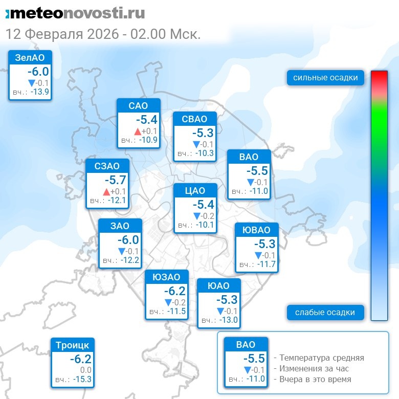 В 2:00 в Москве было от -6.7°C до -4.7°C, средняя температура -5.6°C #погода #Москва #зима #температура #12февраля #четверг
