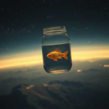 В трёхлитровой банке рыбка золотая