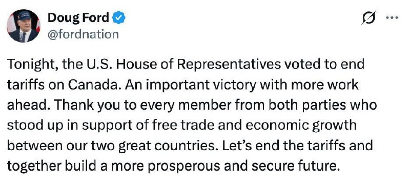 Doug Ford PRAISES the bipartisan rejection of Trump’s tariffs on Canada
