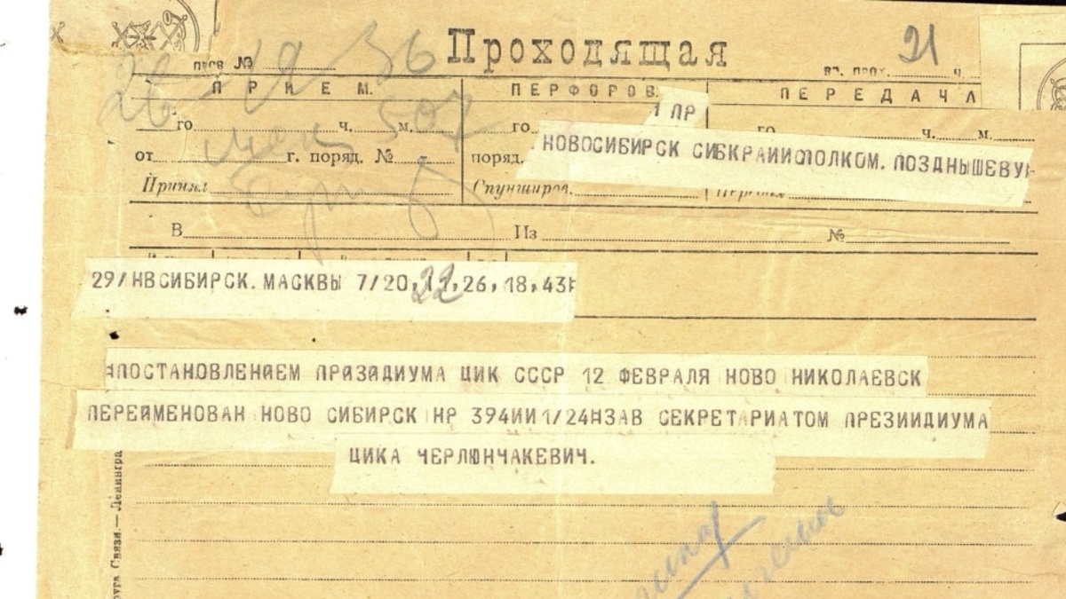 12 февраля 1926 года город Новониколаевск был официально переименован в Новосибирск. Соответствующее решение утвердил председатель ВЦИК Михаил Калинин. Сообщение об этом опубликовано на сайте Музея Новосибирска вместе с архивными фото тех лет. Идея изменить название появилась после Октябрьской революции. В 1922 году предлагали назвать город Смирновском в честь революционера Ивана Смирнова, но Кремль отклонил этот вариант. Позже рассматривалось название Краснообск, но и оно не получило одобрения. Название Новосибирск впервые предложили в ноябре 1925 года на Первом окружном съезде Советов. Делегаты поддержали идею, хотя местные жители высказывали недовольство. Среди альтернативных вариантов звучали Ленинознаменск-на-Оби, Старосибирск, Сибирск, Сибград, Коммунград, Обск, Красносибирск, Ревкрайсиб, Оревсиб, Яковлевск, Сибревком, Октябрьград, Владимиро-Сибирск, Красно-Обск, Обьгород, Курултай, Кооператорск, Смирновск, Сибкрайград, Ленинскзнаменск-на-Оби, Центросибирск, Советград, Лашевич, С