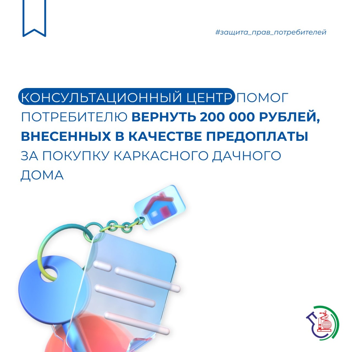 🔹Консультационный центр помог потребителю вернуть 200 000 рублей, внесенных в качестве предоплаты за покупку каркасного дачного дома