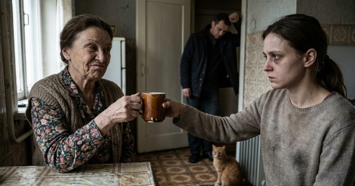 Когда за свекровью захлопнулась дверь, на кухне стало спокойно. Дмитрий подошёл к жене и неловко коснулся её руки.