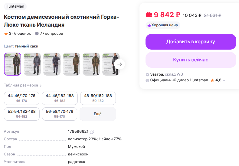 Костюм Горка-люкс с ВБ за 10 000 тысяч и всего три звезды от покупателей ⭐ ⭐ ⭐
